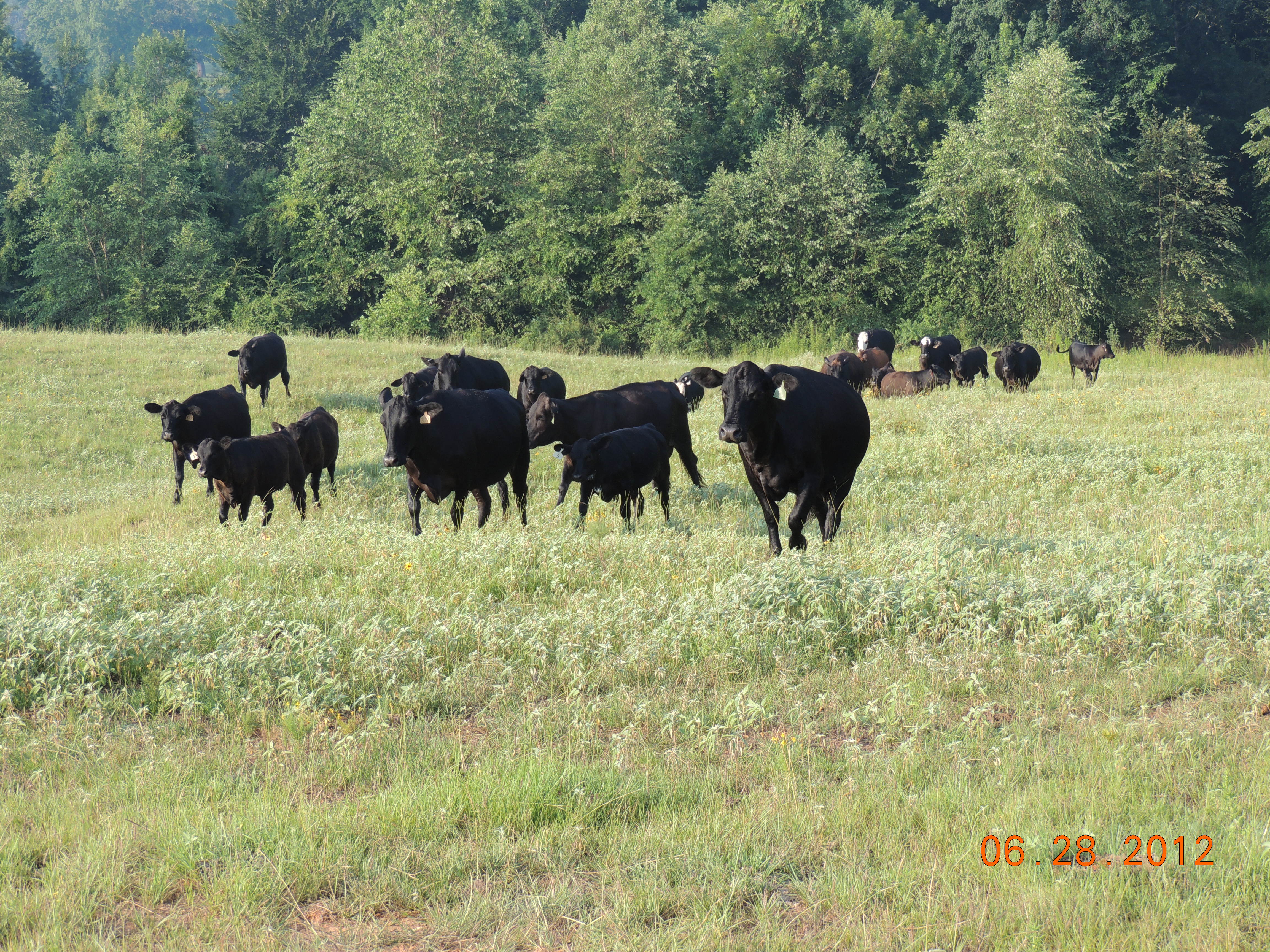 So this morning I knew that we were going to move some cattle around. So as I opened one gate, I decided I would “call” but make it barely audible. As I swung the gate open and faintly “called”, this loud mouth cow bawled back a reply from deep in the pasture on the other side of the creek. From her sounding the alarm – I started to see speedy movement in my direction. It took them no time for the cows to recognize the “call”- respond – and roll through the gate to untouched green grass. They were happy cows.