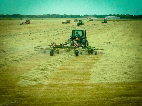 A custom ground spraying operation – hay production – Brahman cattle. They sell around 300,000 square bales – biggest customer HLSR. Brother owns Navasota Auction Barn – receiving pens on the ranch. Part of Hudgens Brahman family. They try to bale about 5000 bales a day. Use some flood irrigation on their Alicia coastal – flood the fields like rice.