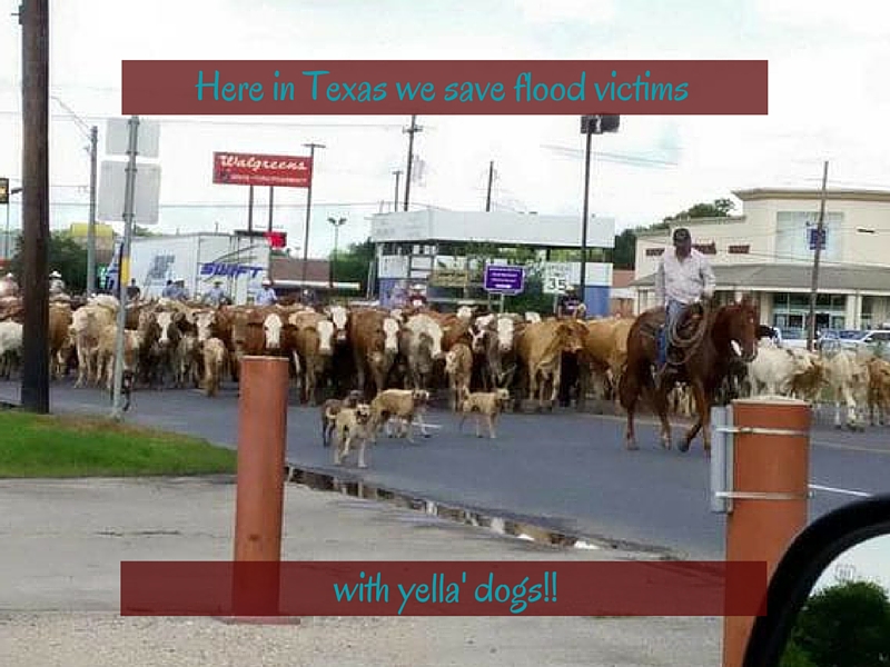 So it did not surprise me that Brandon Richburg set out to rescue several hundred head of cattle out of the flooded areas of Dayton, Texas. As Texas received record rainfall in a matter of days – dams were opened – rivers were out of their banks for miles – and the Dayton area was under water. Cows were stranded on small patches of ground completely surrounded by water – some cows scattered into areas they thought were safe without knowing the water was rising and on its way to meet them. And the worst part was that these were “momma” cows with babies by their side. Brandon, Clint Parker, and Caleb Rhone were the only three to go in to get all these cows from the worst of places although the news media showed a force of people waiting for them as they got the cattle close to the shore. They were on foot at times – searching for cows. They were on their horses riding and then swimming these animals through over 15 ft of water at times. They had to make hard decisions – life and death decisions. But they were never afraid for their safety – just the lives of the cows, calves, horses, dogs. They saw things that they would like to forget – wildlife that did not have a chance – too many snakes!!